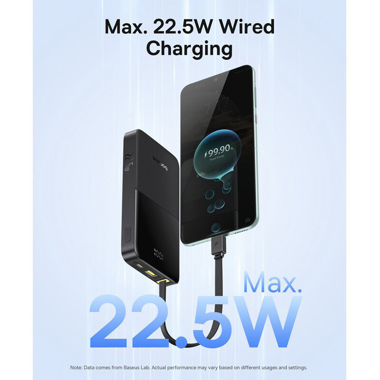 مجهز به درگاه های خروجی USB و Type-C به همراه کابل رابط USB-C با حداکثر شدت جریان خروجی 2.4A/5V و توان خروجی 22.5 وات
